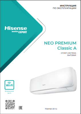 Документы и инструкция к кондиционеру Hisense NEO Premium Classic A AS-13HW4SVDTG5